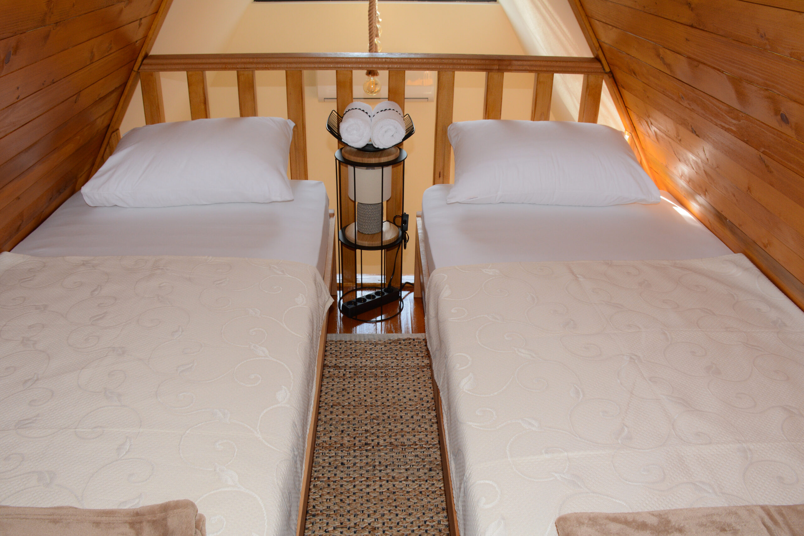 Ove jedinstvene kućice u prirodi, okružene borovima i lipama, pružaju dodatni nivo privatnosti i udobnosti porodicama. Svaka od četri planinske kuće ima sopstveno kupatilo i mini kuhinju, opremljene su sa klima uređajima, a gostima su na raspolaganju besplatan Wi-Fi i kablovska televizija.